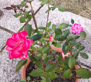ミニバラは鉢植えにしました