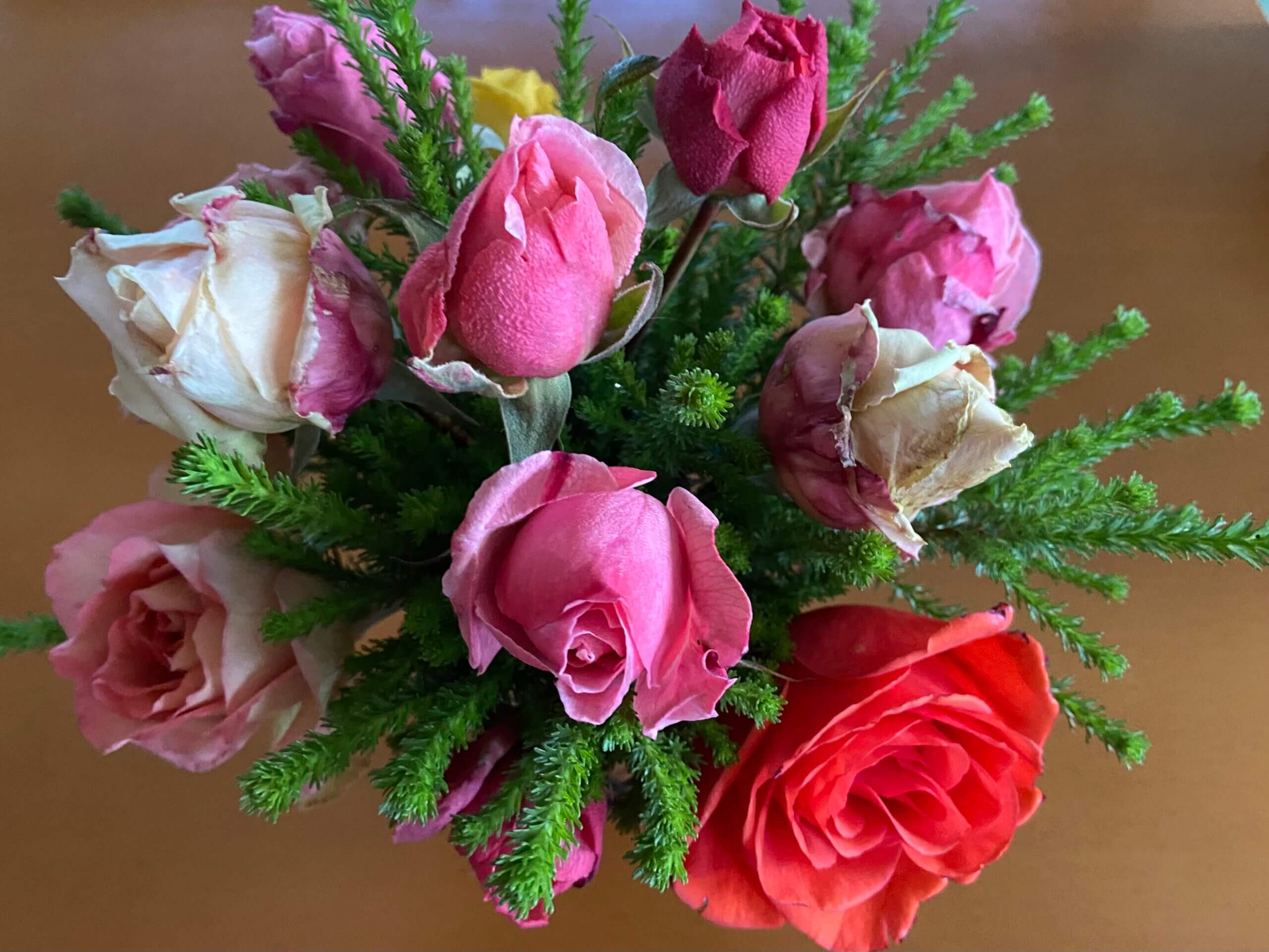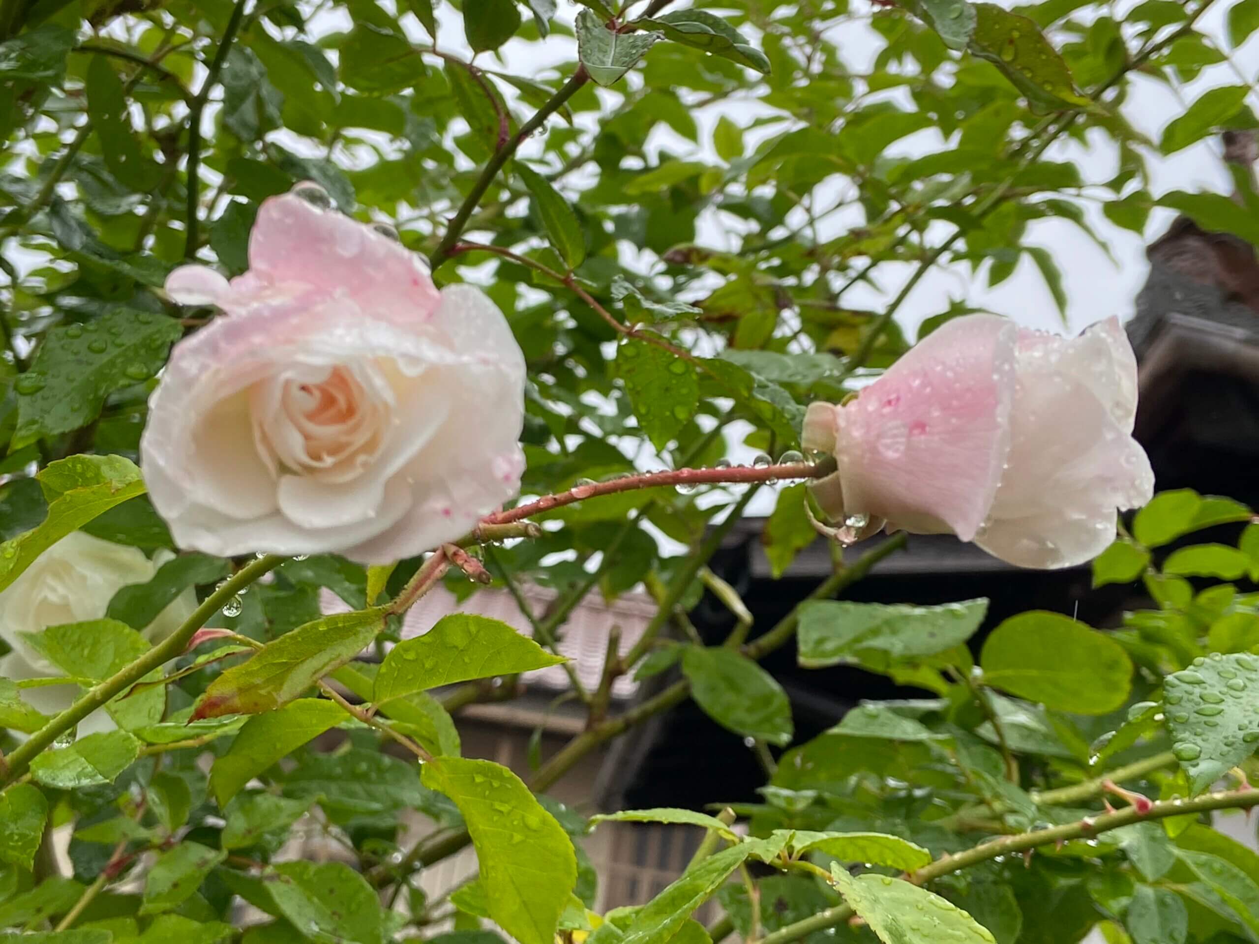 つるアイスバーグの花びらがうっすらピンク色に🌸蕾をカット 部屋で咲いてくれると 良いな❣️