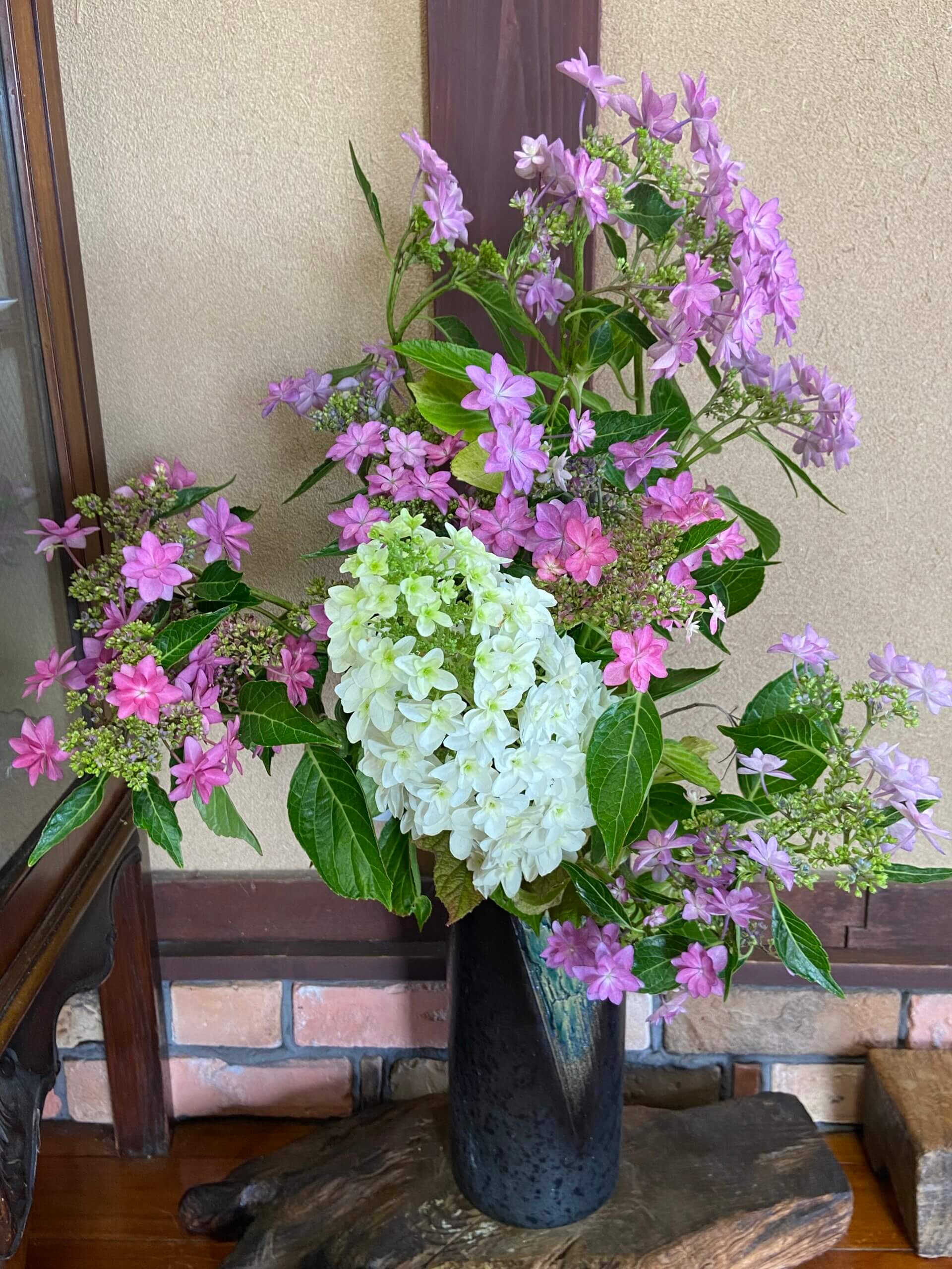 おはようございます😊 美容院で赤い紫陽花を見ました 私はスカシユリを持って行き 「挿木されますか」と言って 1本下さいました 上手くいけば良いのですが