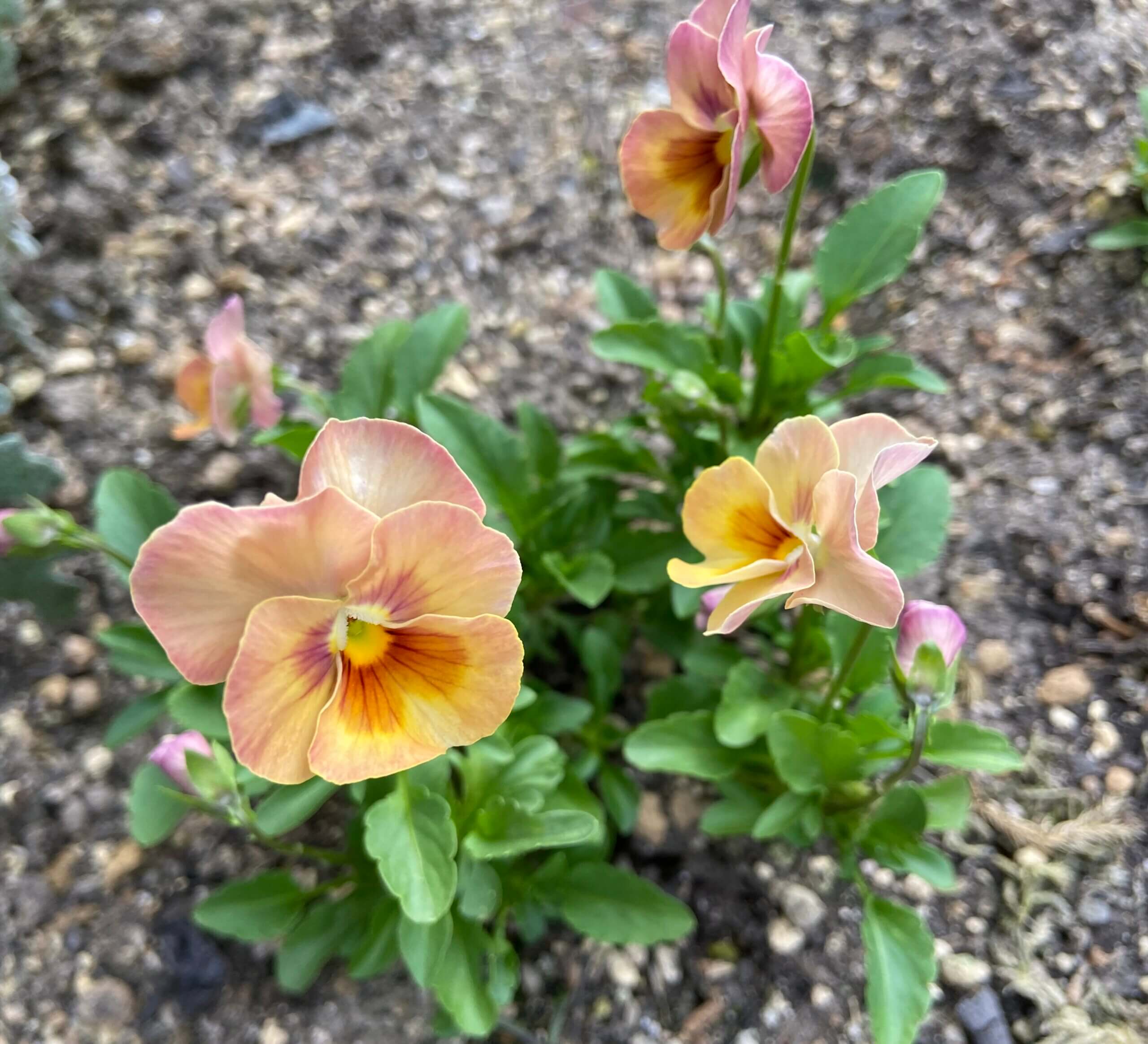 切り戻して冬越しさせるために植えたビオラが咲き始めました 1年草と思っていたが何株か 冬越し出来そう 気にいったものだけ
