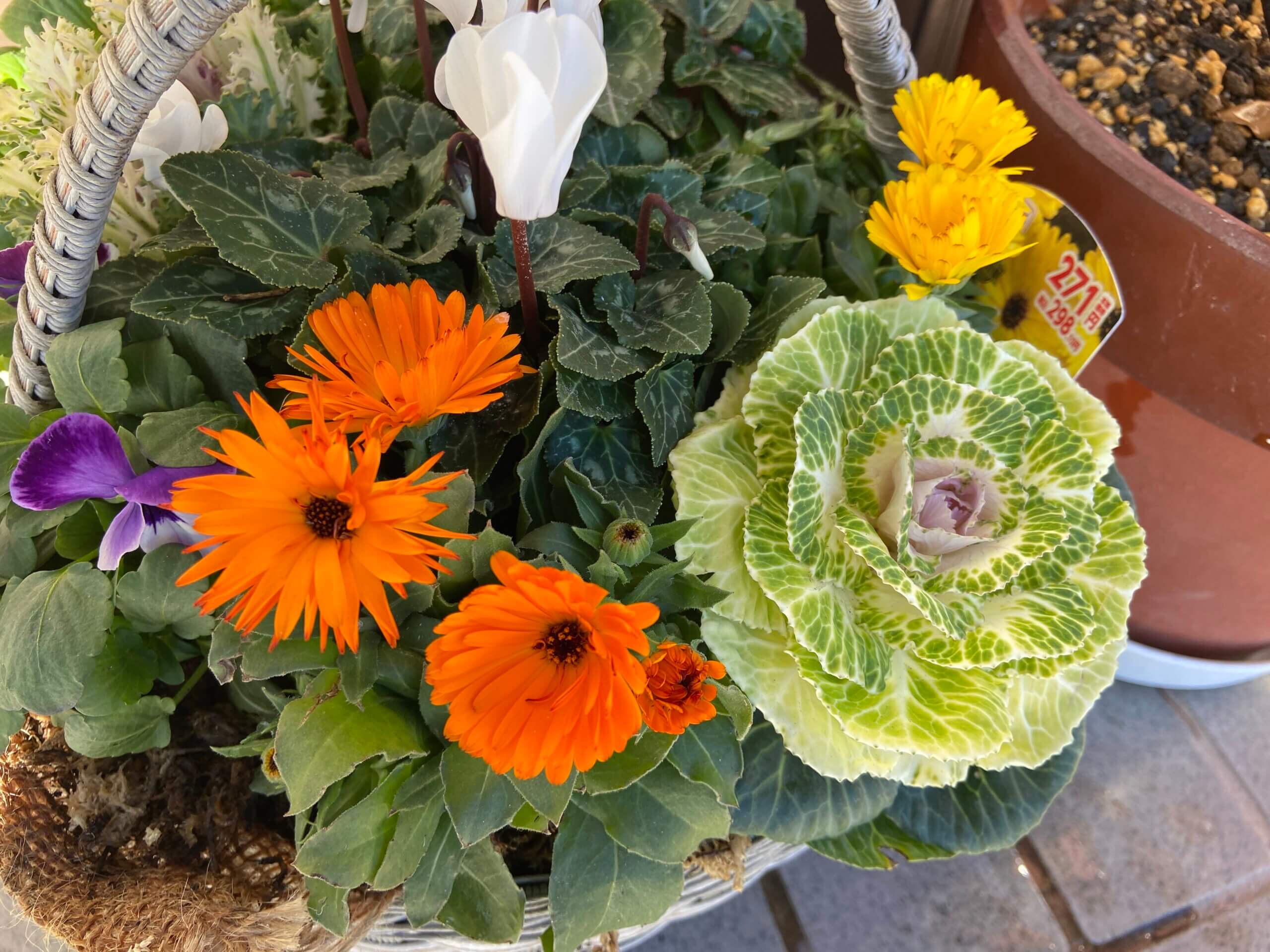 おはようございます😊 上2枚は思い出の写真 3枚目は寄植え 葉牡丹も色々ありますね