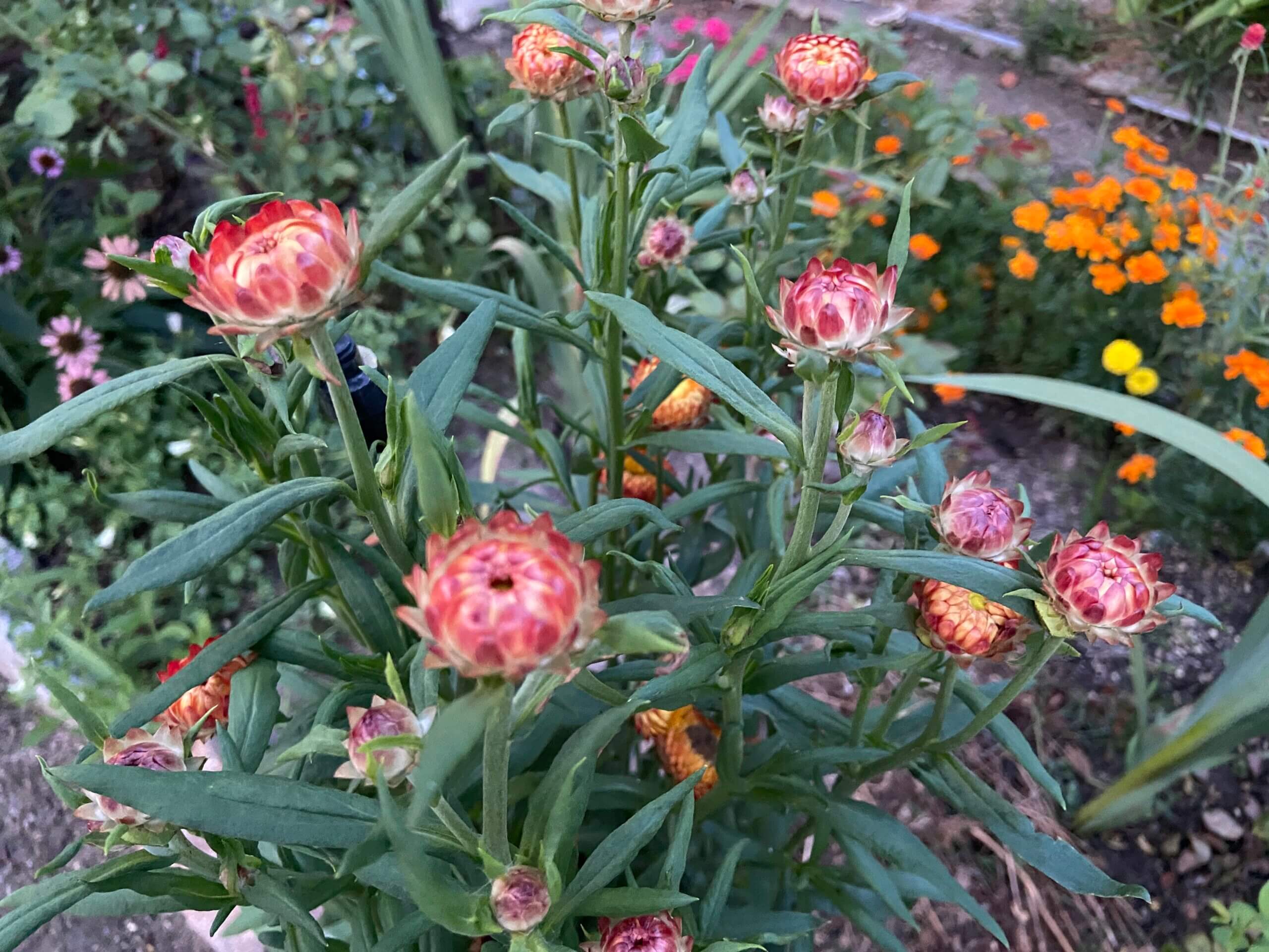 おはようございます😊 ヤブラン おみなえし 友達に混合の種をもらい蒔いた中に ムギワラギク(ヘリクリサム)がありましたよ