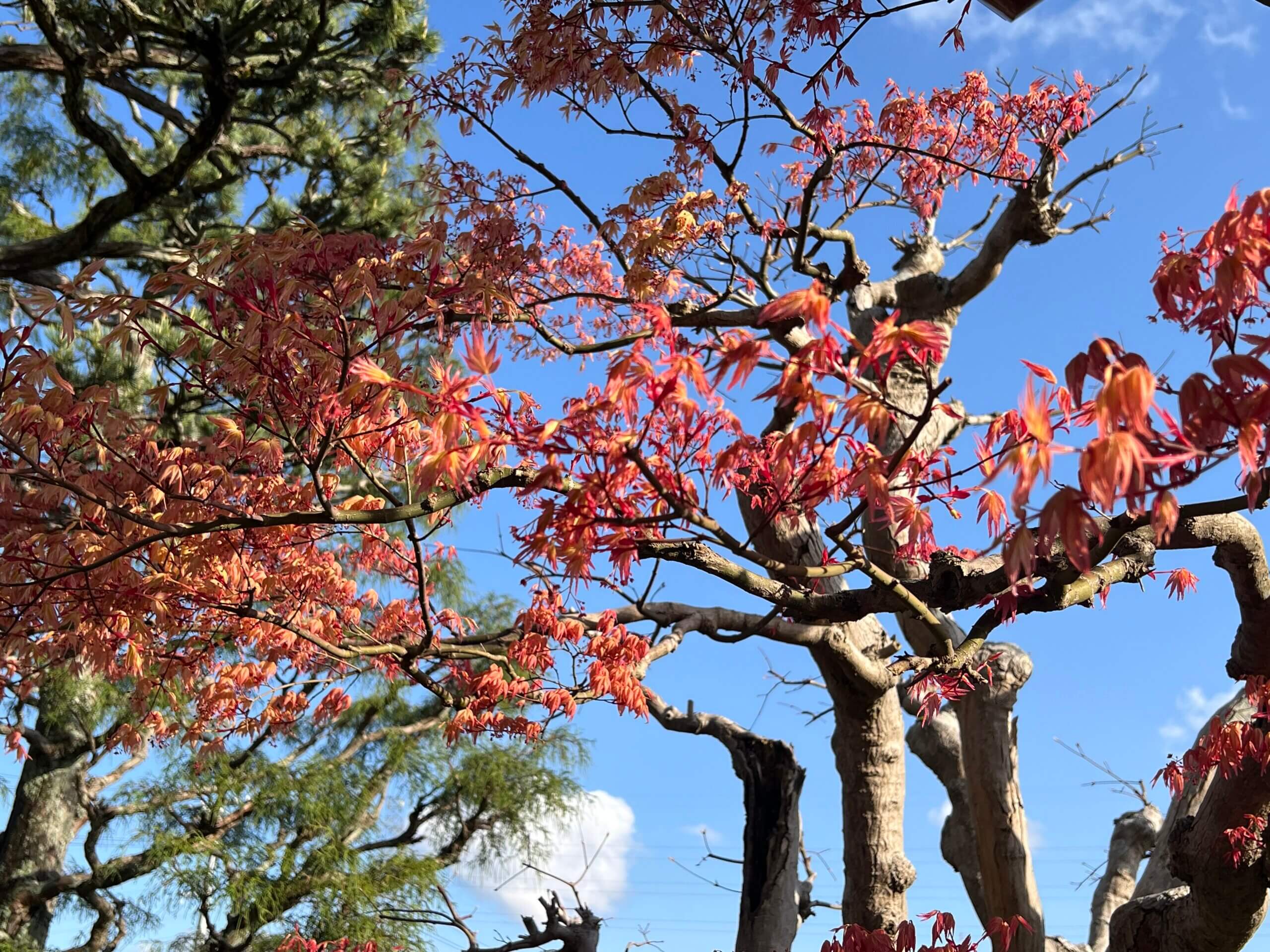 紅葉の芽吹き 青空に映えます